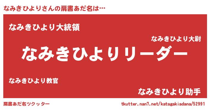 | ポケモン風あだ名 | 『ヒナミキヒヨリ』『ナミキダネ』 |
