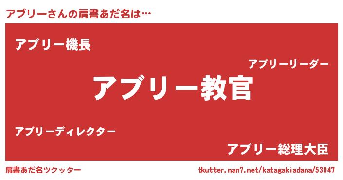 | 男性向けラノベタイトル風あだ名 | 『この素晴らしい世界にアブリーを!』 |