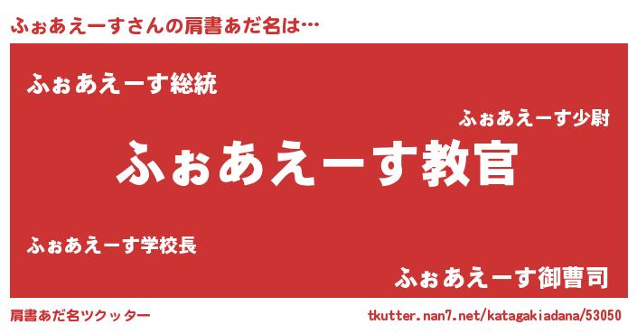 | 男性向けラノベタイトル風あだ名 | 『この素晴らしい世界にふぉあえーすを!』 |