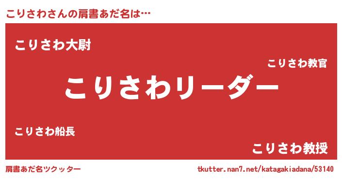 | 意味不明あだ名 | 『とにかく怪しいこりさわ』 |