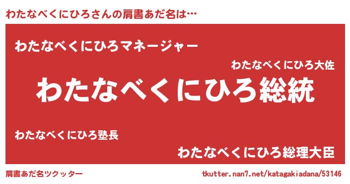 | 男性向けラノベタイトル風あだ名 | 『Re:わたなべくにひろから始める異世界生活』 |