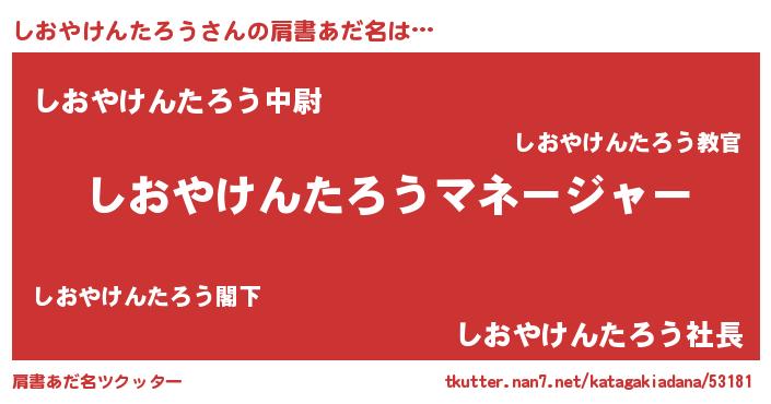 | 男性向けラノベタイトル風あだ名 | 『はたらくしおやけんたろうさま!』 |