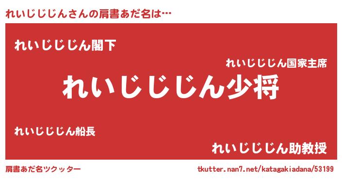 | 男性向けラノベタイトル風あだ名 | 『れいじじじん~年齢イコール彼女いない歴の魔法使い~』 |