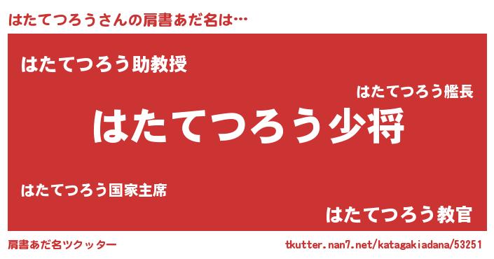 | 男性向けラノベタイトル風あだ名 | 『転生したらはたてつろうだった件』 |