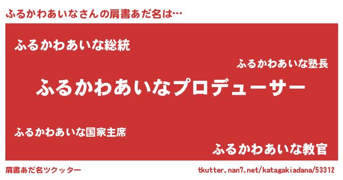 | 男性向けラノベタイトル風あだ名 | 『ふるかわあいなに滅ぼされるだけの簡単なお仕事です』 |