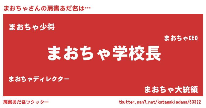 | ヘコむあだ名 | 『つくし』『まおもー』『まお太郎』 |