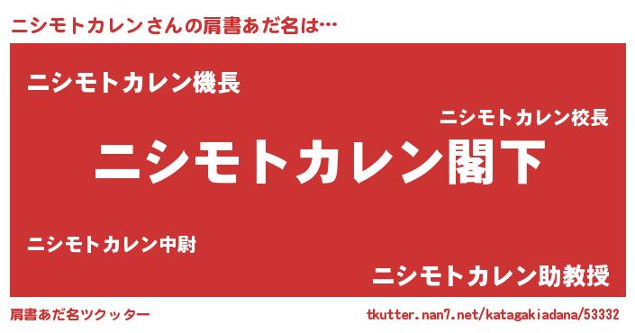| 意味不明あだ名 | 『自称ニシモトカレン』 |