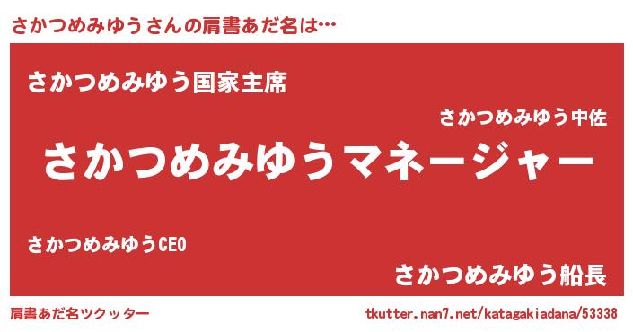 | 男性向けラノベタイトル風あだ名 | 『はたらくさかつめみゆうさま!』 |