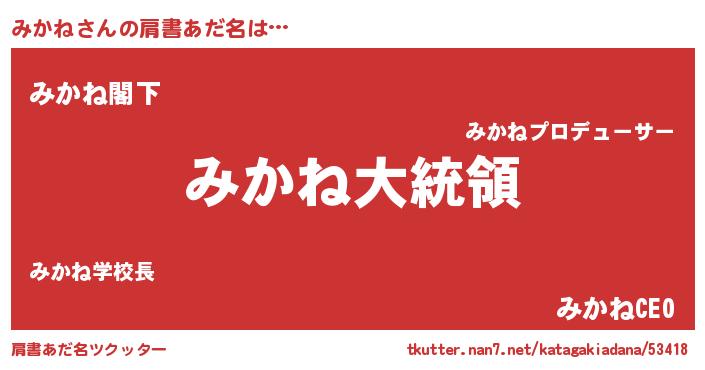 | 意味不明あだ名 | 『みかねフォーエバー』『自称みかね』 |