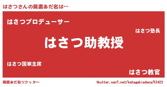 | 女子向けラノベタイトル風あだ名 | 『死神はさつの再婚』『はさつ様がみてる』 |