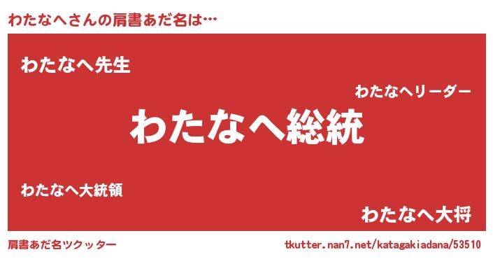| 意味不明あだ名 | 『自称わたなへ』『永久保存わたなへ』 |