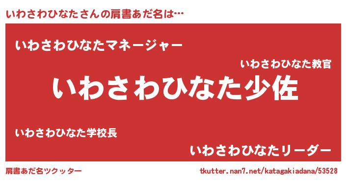 | 男性向けラノベタイトル風あだ名 | 『イワサワヒナタスレイヤー』 |