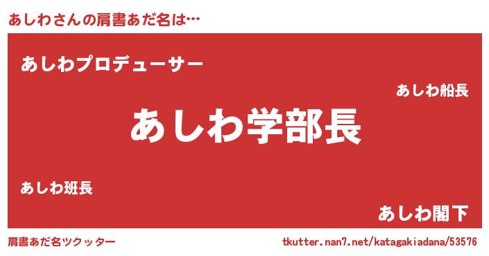 | ヒーロー風カッコイイあだ名 | 『愛の使者あしわ』『サイバー戦士アシワ』 |