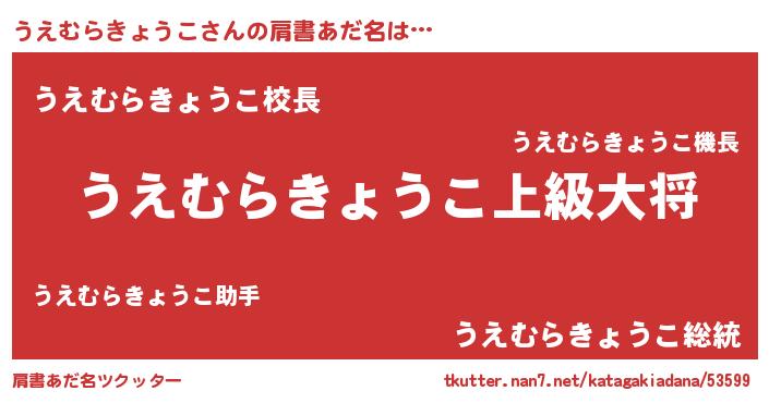 | 男性向けラノベタイトル風あだ名 | 『ウエムラキョウコスレイヤー』 |