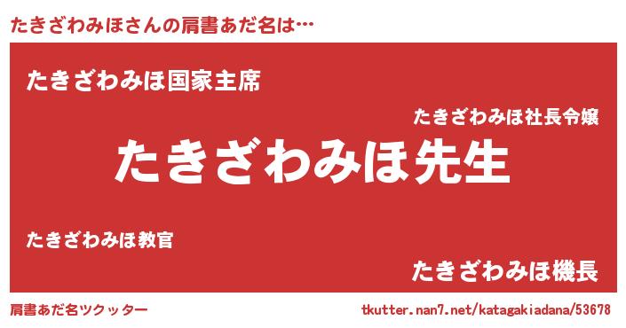 | 男性向けラノベタイトル風あだ名 | 『たきざわみほという概念が存在しない退屈な世界 』 |