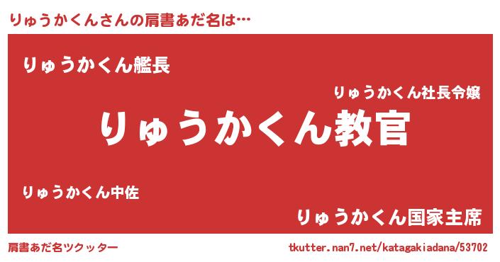| 男性向けラノベタイトル風あだ名 | 『魔弾の王とりゅうかくん』 |