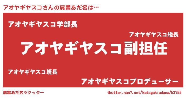 | 男性向けラノベタイトル風あだ名 | 『アオヤギヤスコという概念が存在しない退屈な世界 』 |
