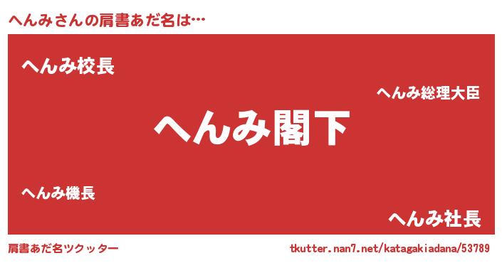 | 男性向けラノベタイトル風あだ名 | 『魔法科高校のへんみ』 |