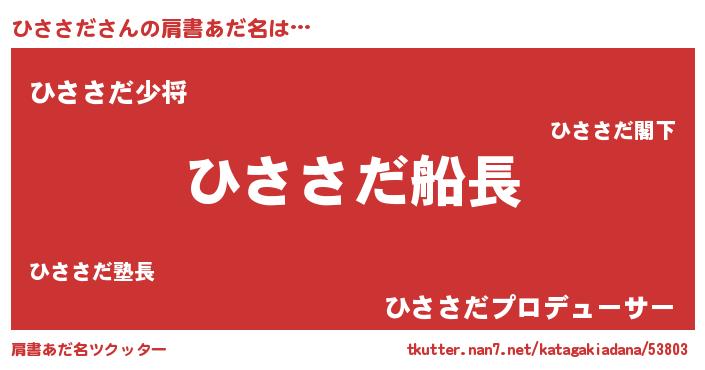 | 欧米人風あだ名 | 『ひささだ・ステッグマイヤー』 |