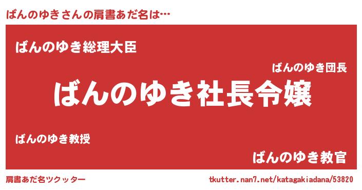 | ファンタジー風あだ名 | 『バンフェル』『エターナルバンノユキー』 |