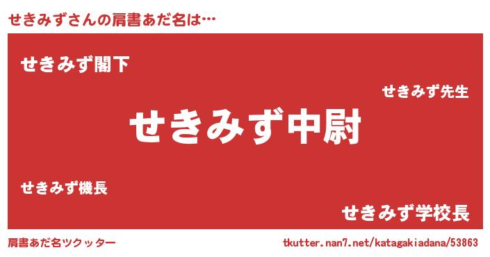 | 男性向けラノベタイトル風あだ名 | 『せきみず~年齢イコール彼女いない歴の魔法使い~』 |