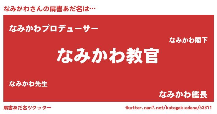 | ヒーロー風カッコイイあだ名 | 『仮面ナミダー』『ウルトラ戦士ナミカワ』 |