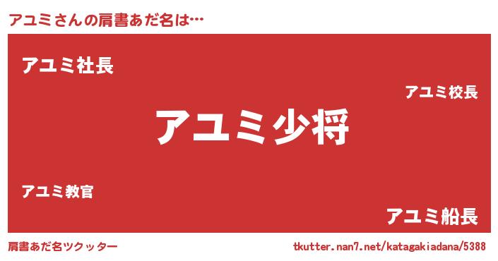 | ピコ太郎風あだ名 | 『アコ五郎』『ピコア郎』『アユ四郎』 |