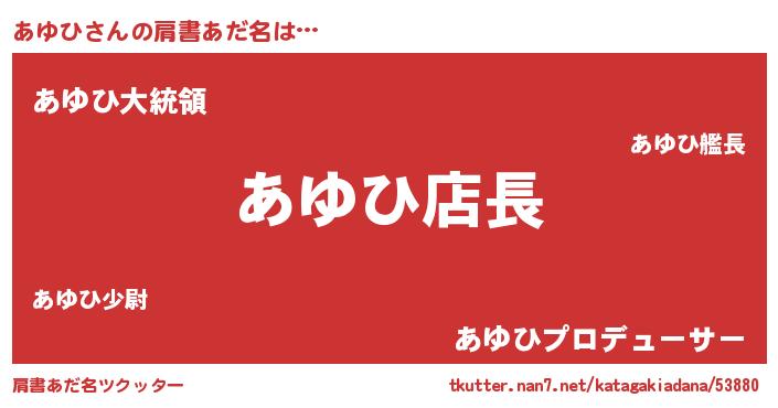 ファンタジー風あだ名 | 『アユフェル』『エターナルアユヒー』 |