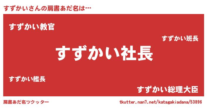 | 男性向けラノベタイトル風あだ名 | 『すずかいの憂鬱』『緋弾のスズカイ』 |