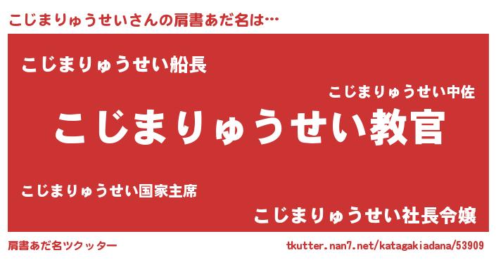 | 意味不明あだ名 | 『住所不定無職こじまりゅうせい(98歳)』 |