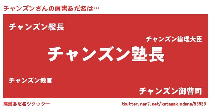 | 男性向けラノベタイトル風あだ名 | 『ダンジョンにチャンズンを求めるのは間違っているだろうか』 |