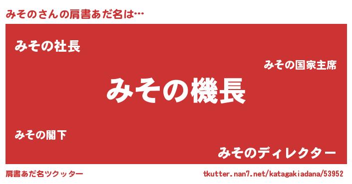 | ヒーロー風カッコイイあだ名 | 『スーパーミソノ』『ウルトラみそのマン』 |