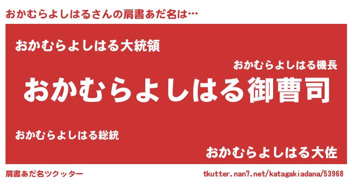 | 胡散臭い通販商品みたいなあだ名 | 『モテモテ間違いなし霊験あらたかなお札…その名も「おかむらよしはる」』 |