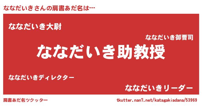 | 男性向けラノベタイトル風あだ名 | 『ノーゲーム・ノーナナダイキ』 |