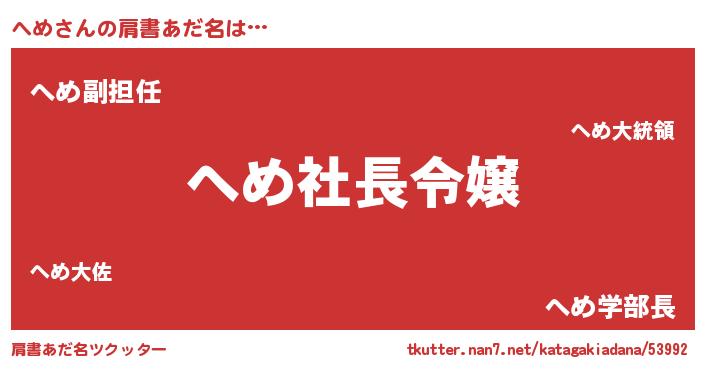 | 女子向けラノベタイトル風あだ名 | 『へめ姫と円卓の騎士』『死神へめの再婚』 |