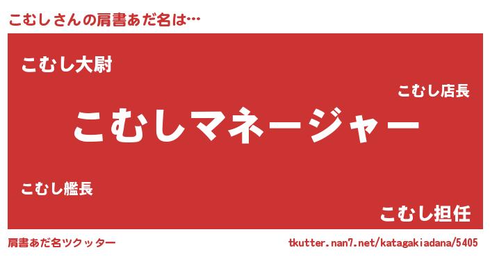 | ヘコむあだ名 | 『こむし(笑)』『こむにゅー』『牛乳』 |