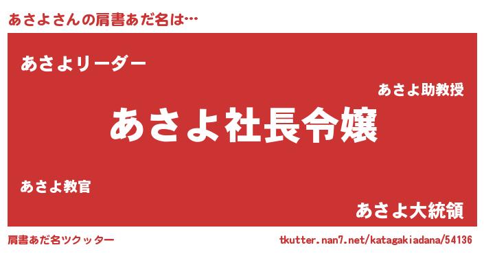 | 男性向けラノベタイトル風あだ名 | 『あさよの憂鬱』『魔弾の王とあさよ』 |