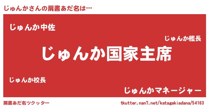 | ヘコむあだ名 | 『豆乳』『じゅんか(笑)』『じゅお』 |