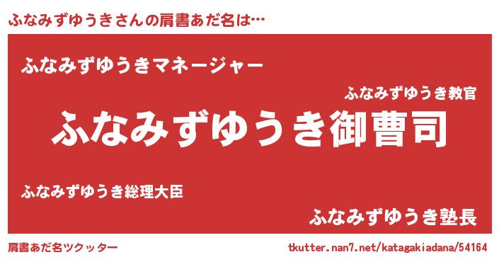| 男性向けラノベタイトル風あだ名 | 『ふなみずゆうきの憂鬱』 |
