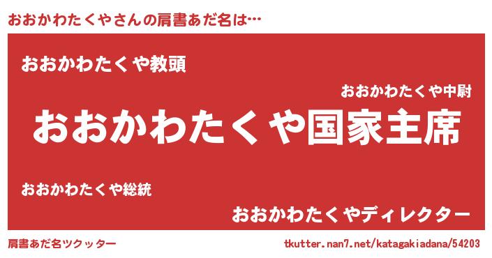 | 意味不明あだ名 | 『おおかわたくやフォーエバー』 |