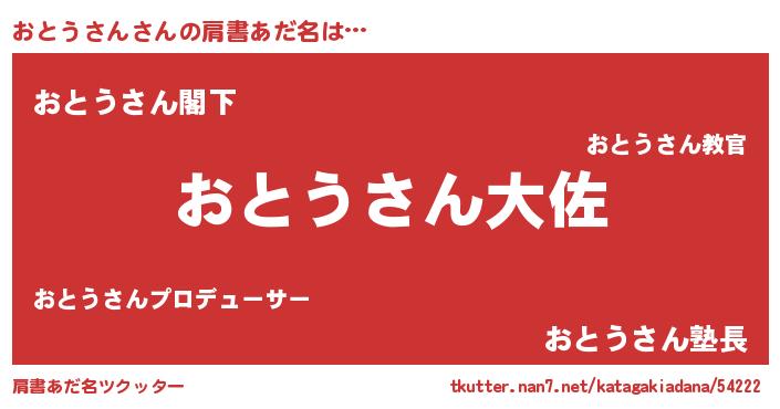 | 男性向けラノベタイトル風あだ名 | 『転生したらおとうさんだった件』 |