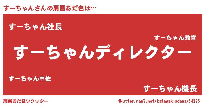 | 男性向けラノベタイトル風あだ名 | 『すーちゃんに滅ぼされるだけの簡単なお仕事です』 |