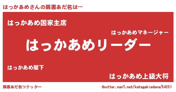 | 意味不明あだ名 | 『とにかく怪しいはっかあめ』 |