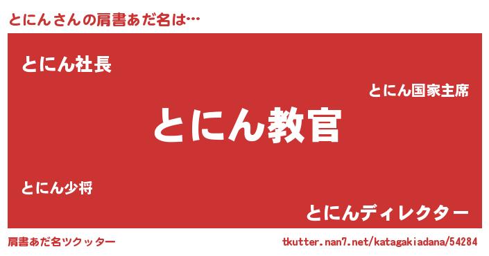 | 男性向けラノベタイトル風あだ名 | 『この素晴らしい世界にとにんを!』 |