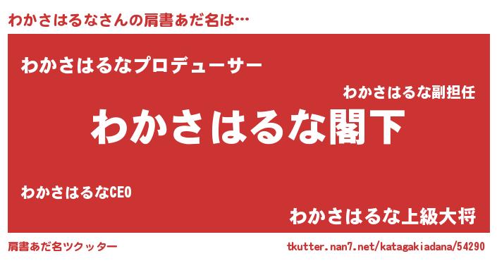 | 意味不明あだ名 | 『自称わかさはるな』 |