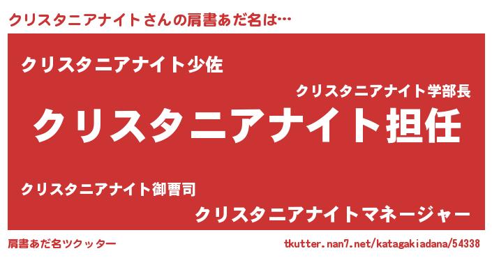 | 意味不明あだ名 | 『永久保存クリスタニアナイト』 |