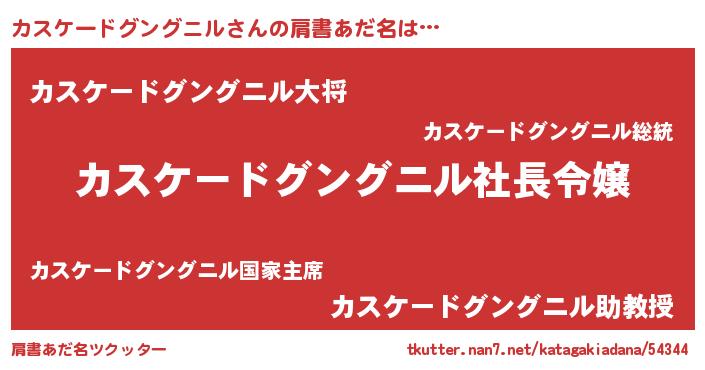 | 男性向けラノベタイトル風あだ名 | 『カスケードグングニルアートオンライン』 |