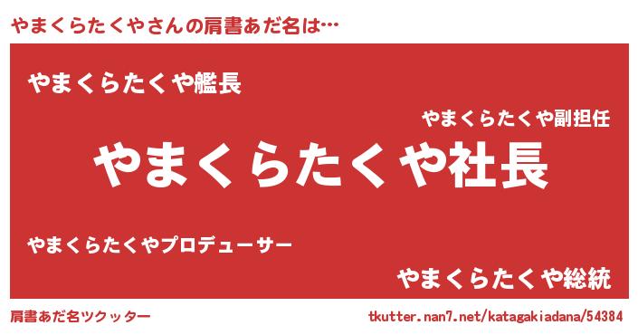 | 男性向けラノベタイトル風あだ名 | 『やまくらたくやの憂鬱』 |