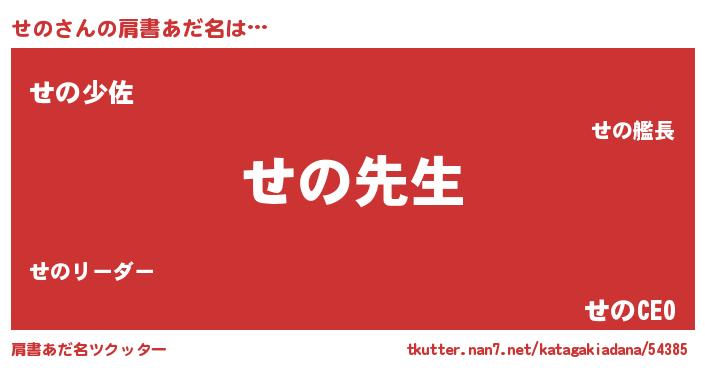 | ヘコむあだ名 | 『せの(小並感)』『せのにー』『牛乳』 |