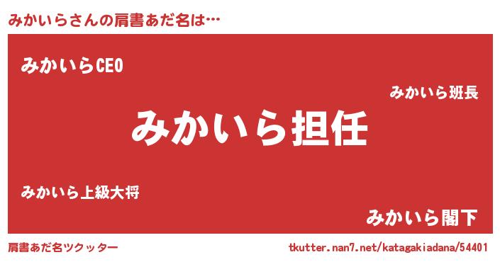 | ヒーロー風カッコイイあだ名 | 『ネオミカイラ』『スーパーミカイラ』 |
